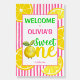 Sweet one pink lemonade first girls birthday party personalized welcome sign board, cute yellow lemon pink border summer first birthday party welcome sign personalized entrance decor
