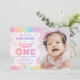 Sweet ONE Rainbow Donut 1st Birthday Photo Invitation