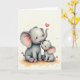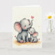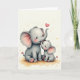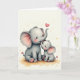 This card shows two stylized grey elephant figures with rounded shapes, where the larger one leans close to the smaller with a tender, protective posture ❤️. Their faces are simple and expressive, with small eyelashes and rosy cheeks that make their closeness feel like a quiet romance or a sweet friendship. The larger elephant’s trunk rests gently on the smaller one’s head, and a bright pink heart floats above them like a soft signal of affection. Soft pink accents appear inside their ears and on their paw pads, echoing the blush on their cheeks and adding warmth to the scene. Each little tail ends in a tiny heart tip, repeating the love motif in a subtle way. The main message text sits near the top in a light pink tone, leaving the elephants centered and unobstructed, with a smaller line of text placed beneath in a softer grey. The background is a creamy off-white sprinkled with small golden dots, and a warm brown watercolor-style wash forms the ground under their feet 🌼.