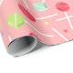 Pink wrapping paper patterned with sweet pastel coloured lollipops