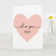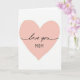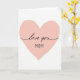 This card features a large pastel pink heart set slightly off-center on a bright white background, creating a calm, airy look. The heart has soft, slightly uneven edges that feel gently drawn, like a tender note made just for one special person ❤️. Across the middle of the heart, the words “love you” appear in smooth, flowing cursive-style lettering that stretches comfortably from left to right. Beneath it, “MOM” sits centered in simple uppercase letters, giving the message a steady, straightforward anchor. The text is darker than the heart—closer to a deep gray or near-black—so it stands out clearly without feeling harsh. The generous white space around the heart keeps everything focused, like a quiet moment shared between close family members 👩. The blush-pink heart remains the main focal point, with the two lines of text stacked neatly inside it.