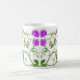 Original fine art design of purple Sweet Pea garden vines on a quality coffee mug by Carolyn McFann.
