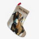 Perfect! Exactly what I ordered! I uploaded a picture of my blue chow, and the screen print was incredible. the back side of the stocking was the red and black checkered print. my puppy's name was also printed on the cuff of the stocking. PERFECT! Highly recommend this product! My puppy's name was screen printed onto the cuff of the stocking, the font was perfect!
