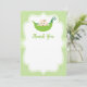 This is a cute thank you card for any event or for a baby shower. It features a baby in a pea pod in a white frame on a green background. The back of the card is blank.