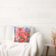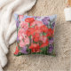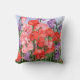 A colorful pillow covered with sweet peas blossoms.