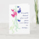 A wedding invitation card with a handpainted watercolor design of pink and blue sweet peas in the Art Nouveau style. The inside is left blank for you to add your details.