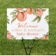 This design features a painted bunch of sweet peaches hanging from a branch. Along with a lovely combination of modern and rustic fonts. Greet your baby shower guests with this welcome yard sign. See the entire collection for more matching items!