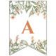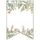 A stylish bunting flag with peachy colored flowers and sage green leaves.