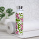 Sweet peas and bumblebees, pink, green and white water bottle