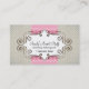 This Sweet Pink Polka Dot business card evokes sweetness from its graphic elements to the color palette. The background is taupe with a dot pattern overlay. The business name, description, and main contact stand out in an ornate frame with curlicues. The reverse reveals the same background with the rest of the business information with the pink scalloped element bordering on top and bottom. Appropriate for a business geared to the girly sector, a food establishment that specializes in sweet treats or a boutique. Available in alternate colors with matching products.