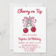 Sweet Pink Bow Cherry on Top 1st Birthday Invitation