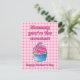 A sweet Happy Mother's Day card with a pink cupcake on a checkered background in pink colors and with the text Mommy you're the Sweetest.