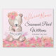 Sweet Pink Floral Bear Welcome Home Baby Girl Yard Sign
