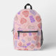Sweet Pink Purple Teddy Bear & Heart Pattern Printed Backpack