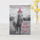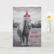 This adorable birthday card features a black and white picture of a pony wearing a colorful birthday hat. You can’t resist the cuteness!
