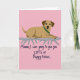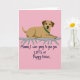 Designed with a soft digital illustration style, the card centers on a stylized dog in a gentle golden-brown tone, resting near the upper middle of the front. Its dark eyes and slightly open smile give it an affectionate, friendly look, like it’s leaning in for a sweet moment ❤️. Darker ears frame its face, and a bright green collar adds a cheerful touch against the muted fur. The dog lies on a curving gray shape that reads like a branch or roots stretching sideways, grounding the scene like a cozy perch shared with someone close. Below the picture, the message “Mama, I was going to give you LOTS of Puppy kisses...” is placed in a deep, easy-to-read handwritten-style font, centered and spaced to feel calm and caring 🌼. The background stays a uniform, light pink that softens the whole layout and keeps the focus on the dog’s tender expression. The final detail is the smooth contrast between the gray base line and the soft pink field behind it.