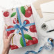 Cherries on plaid pattern Glossy Wrapping Paper is absolutely scrummy featuring single and paired cherries with intact stems and leaves as if freshly picked from the cherry tree on a sweet faded pink and pastels plaid background - by katz_d_zynes