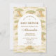 A sweet storybook-style safari design featuring gentle watercolor baby animals including lions, giraffes, and elephants surrounded by soft jungle greenery and a delicate botanical background. The warm neutral palette of cream, honey gold, and soft olive creates a timeless nature-inspired aesthetic, while the elegant arched layout provides a beautiful space for event details.