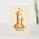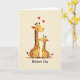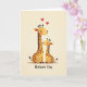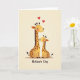 On the front of the card, two stylized long-necked savanna animals stand close together, with a taller mother figure leaning gently toward her smaller youngster as if sharing a quiet, affectionate moment ❤️. Both characters are colored in warm golden yellow with rounded shapes and soft brown spots, giving them a friendly, cozy look. Their faces show small smiles, rosy pink cheeks, and dark, shiny eyes that meet with a tender, trusting gaze. Above the taller figure, two bright red hearts hover in the open space, adding a romantic warmth to the scene without crowding it. The background is a light cream tone with lots of breathing room, making the pair feel like the clear focus, like a sweet snapshot. Subtle shading and a faint outline texture add depth, while a soft earthy shadow sits under their feet to ground them on the page. Along the bottom, a short Mother’s Day message is placed in a simple, easy-to-read style in a darker coordinating color 🌼. The two red hearts sit just above the mother’s head against the pale cream background.