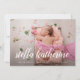 Elegant birth announcements feature your favorite newborn photo in full bleed, with baby's name overlaid in white calligraphy script. Personalize with baby's birth stats beneath. Add six additional photos to the back in a collage layout, with the parents' or family's names in the center.