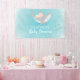 An sweet shark baby shower banner with a beautiful aqua watery background.