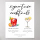 This sweet signature cocktails menu poster features simple black typography above 2 of your favorite drinks and their ingredients for your coastal wedding bar. A chic Red Wedding drink and Lemon drop drawing add a fun fruit flair to your bar menu. Complete with the couple's names and date for their reception.