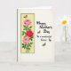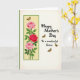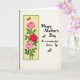 This card features a tall layout split into two main areas, balancing flowers with a gentle message. On the left third, a soft yellow panel is framed by a thin green border, and three roses climb upward on leafy stems as if leaning toward one another in quiet affection ❤️. Two blooms are a light pink, while the middle flower is a deeper magenta that draws the eye like a warm embrace between close family. A tiny golden-winged insect floats near the top rose, adding a light, airy touch. The right side is a creamy white space with the message placed centrally in a flowing, cursive-style font, with the lettering in a dark, easy-to-read color. Small golden-winged insects are scattered around the words like gentle companions, enhancing a close, caring mood 🌼. The phrase reads “Happy Mother’s Day To a wonderful Sister,” with the insects drifting near the lines of text on the white background.