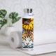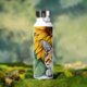 A cat themed personalized water bottle. A tired cat taking a nap next to some sunflowers. Pretty ai watercolor style illustration to add some comfort and coziness to your corner.