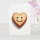 This greeting card features a single heart-shaped sandwich cookie centered on a bright white background. The cookie is golden brown with a lightly bumpy texture, and a stripe of reddish-pink filling shows between the two halves. On the top half, two dark chocolate chips form shiny eyes, while a curved line of chocolate creates a wide, happy smile. Soft, even lighting highlights the cookie, and a faint shadow beneath it adds gentle depth. With no text on the front, the smiling cookie becomes the full message. The overall look feels sweet, friendly, and lighthearted, making it a charming choice for Valentine’s Day. It’s perfect for sharing a little joy and affection with someone special 💕❤️.