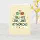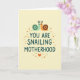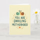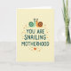 On the front of the card a creamy background sets a calm, softly lit scene that feels tender and close ❤️. Centered in the middle, the phrase “YOU ARE SNAILING MOTHERHOOD” appears in rounded deep teal lettering, standing out clearly against the light backdrop. Above the words, two small snail-like creatures create a crown-shaped emblem as they lean toward each other with a gentle, affectionate gaze. The left one is mint green with a deep teal shell, while the right one is warm orange with a rich brown shell, and both have simple dot eyes and tiny pointed antennae that add a sweet, friendly look. Around the central text, scattered orange and light gray dots form a loose border like soft confetti, adding a light celebratory touch 🌼. Near the bottom, a small orange heart sits beneath the message, echoing the warm orange tones of the right creature. The deep teal text visually ties in with the darker shell accents, keeping the design balanced and easy to read. The orange heart rests at the base below the dot border, centered under the teal message.