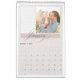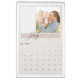 An elegant calendar with flowing script, textured background, a place for writing notes, and your favorite photo