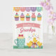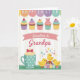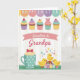 This design shows a spring-themed illustration on a softly striped cream-and-white background, with a decorative banner at the top carrying a seasonal greeting in neat, easy-to-read lettering. Just below, five cupcakes sit in a row, each topped with tall swirls of pastel frosting in pink, aqua, and yellow, arranged so the colors feel friendly and inviting. Small details like a shiny red cherry, a tiny purple candy egg, and a dainty ribbon give each treat its own personality, like little gifts shared between close friends 🌷. In the middle, a soft pink ribbon-shaped banner stretches across the scene with a short family message in darker lettering that stands out clearly. The lower section features a teal mug covered in white polka dots, filled to the brim with creamy topping and tied with a bright red bow, suggesting a sweet treat meant for two. To the right, three fluffy yellow chicks huddle close around patterned eggs, their tilted heads and side-by-side stance giving the moment a tender, companionable feel 🐰. Scattered multicolored stars float above them, and a strip of bright green grass runs along the bottom edge beneath the mug, chicks, and eggs.