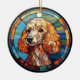 Sweet Stained Glass Dog Poodle Ceramic Ornament