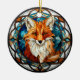 Sweet Stained Glass Forest Fox Ceramic Ornament