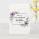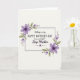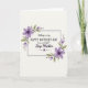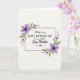 This card features a centered Mother’s Day message addressed to a step mother, set within a thin double-line rectangular frame that feels like a gentle embrace ❤️. The wording is stacked in the middle, with “HAPPY MOTHER’S DAY” standing out in larger, darker lettering while the surrounding lines appear in a finer style above and below. Soft watercolor flowers drift in from the upper left and lower right corners, as if leaning toward the message the way close family might lean in for a quiet hug. The blossoms range from pale lavender to deep plum, with muted olive and sage leaves adding calm contrast, and the petals show subtle shading that suggests a tender, careful touch. The background is a creamy off-white that keeps everything airy and intimate, letting the purple tones feel soothing rather than loud 🌼. Beneath the main text sits a small purple flower with decorative curls, like a tiny flourish meant to echo affection without needing extra words. In the bottom right corner, a small crimson flourish adds a final accent against the soft background.