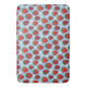 A sweet repeat pattern of juicy strawberries and the plant's white flowers are scattered across a sky blue background. This bath mat is a fun addition to your bathroom home decor for the sweet, red, fruit lover.