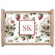 Sweet Strawberry & Floral Pattern Custom Monogram Serving Tray