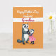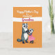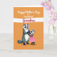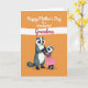 This card shows two human-like striped mammals holding paws near the bottom of the design, sharing a gentle, close moment that feels affectionate ❤️. The larger figure has black-and-white face markings and charcoal-gray fur, standing calmly as the smaller companion looks up with an admiring, trusting expression. The smaller one wears a pleated pink dress that adds a bright pop of color against the warm background. Behind them, the setting is a rich orange field that keeps the scene cozy and cheerful. A wide white brushstroke stretches horizontally across the upper half, acting like a banner for the message. The main text sits above the figures on that white band, with some words in crisp white and others in magenta, centered and easy to spot 🌼. The fur and fabric are painted with soft, textured strokes, and the characters are placed slightly off-center with the orange background filling the rest of the space.