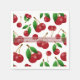 Bright red cherries pattern cocktail napkins with paired and single cherries with stems and green leaves still intact, as if just picked from the cherry tree ... customizable with name or business/organization name or slogan - by katz_d_zynes