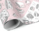 Original art by artist KG Nowak. Design includes drawings of unique teacups. Each teacup has a special theme like seeing, gardening, or polka dots! The color palette includes soft gray, crisp white, and pale petal pink. Pink and white check pattern with teacups pattern overlay to unify this design. Little line accents add details to embellish the drawing.
