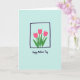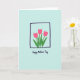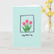This design shows a calm, minimal illustration centered on three stylized flowers in bright pink, their pointed petals leaning toward one another like close friends sharing a quiet moment ❤️. Deep green leaves curl and sway beneath them, adding a gentle sense of movement and closeness. The flowers sit inside a dark indigo square outline that’s slightly uneven, giving it a relaxed, human-drawn look. Behind everything is a smooth, pale aqua background that keeps the scene airy while making the pink and green stand out. Below the framed flowers, a short Mother’s Day message is placed near the bottom in a dark, handwritten-style lettering, centered and easy to spot 🌼. The simple shapes and soft spacing leave plenty of breathing room, while the clustered blooms suggest warmth through their tender, gathered pose. A thin indigo frame surrounds the floral trio, with the pale aqua field filling the rest of the front.