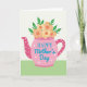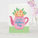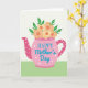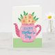 Designed with a cheerful pink teapot at the center, this illustration feels like a cozy kitchen moment shared with someone you adore ❤️. The teapot is rounded with a curved spout and sturdy handle, and it’s dotted with small white circles that add a sweet, friendly touch. From the open top, a loose bouquet of abstract flowers rises in soft peach shades, each bloom marked with a bright orange center and tucked among crisp green leaves. The tender, welcoming mood comes through in the way the flowers seem to lean outward like an offered gift, as if set out for a caring mom 👩. The words “HAPPY Mother’s Day” sit prominently on the teapot’s front in a bright teal, smooth-lettered style that contrasts strongly with the pink. Behind it, the upper background is pale cream with a faint grid texture that looks like woven fabric, while the lower section is a wide muted-green band that grounds the scene. The overall palette stays gentle but lively, with the teal lettering, orange flower centers, and green leaves balancing the soft pink. A pale cream grid fills the top half of the background above a solid muted-green strip along the bottom.