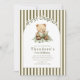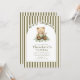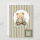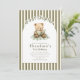 Announce your baby's first birthday with this utterly charming teddy bear invitation. The "First Chapter" theme is beautifully illustrated with a sweet teddy bear immersed in a book, set against a backdrop of elegant green and cream stripes. This design is crafted to be a warm and inviting way to share the joy of your child's milestone. It's perfect for parents looking for a classic yet engaging way to invite loved ones to celebrate this precious occasion and create lasting memories.