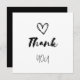 Thank You with a Heart—Love Us. Casual script design. Black and white. Ideal for a baby shower, or a child's birthday party.