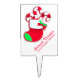 Original bright Christmas cake topper or for sweet desserts with candy canes stripes, in red white and green. Perfect for personalizing a Christmas cake or for a unique way of customising your festive desserts or sweets. Customise with the words of your choice. Graphic uniquely designed by Sarah Trett.