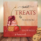 Recipe binder featuring a sweet design with a cupcake and strawberry. The "treats" text is a separate image and can be deleted if you prefer custom texts. A beautiful binder for anyone with a sweet tooth or who likes to bake.
