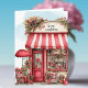 Personalize your special Valentine with this sweet folded greeting card printed with a quirky little flower shop filled with lots of cute little hearts and potted flowers details. Watercolor style illustration has an abstract pastel background front and back. Just edit your name text on the shop front and message inside, Created in a palette of mostly reds and white colors, with your choice of sizes.