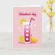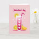 This Valentine's Day card shows a tall glass filled with rosy pink drink, with four small white hearts floating upward inside it. A magenta straw leans into the glass, making it feel like an easy treat to share. Around the drink, bright yellow lemon slices sit to the sides, adding a fresh, sunny contrast. A ripe yellow banana rests near the bottom, giving the scene a friendly, simple touch. The background is a soft pastel pink, and tiny white star shapes are scattered around like little sparkles. At the top, the text reads “Valentine’s day” in pink, flowing cursive-style lettering that matches the straw. It all feels sweet and caring, like a small reminder to pause and show affection 💕❤️. Wishing you a happy Valentine’s Day—send a little love to someone you care about 😘.