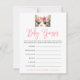 Cute baby shower guessing game card featuring a watercolor gray and white cat wearing a crown of pink flowers at the top of the card. The phrase "Baby Guesses" is featured in a whimsical pink script. Personalize with custom instructions, guessing criteria, and the mom-to-be's name and baby shower date. The design coordinates with our Sweet Watercolor Kitty collection.