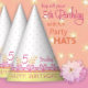 Top off your 5 year old's birthday with a yellow polka dot birthday party hat with a pink floral border and customized with the number 5 and the birthday girl's name.